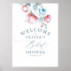 Dammig blå och rosa blommor välkomstskylt för bröllopsfest