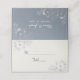 Elegant dammig blå platskort för bröllop med vintageinspirerade blommotiv i mjuk silvergrå. Perfekt för sittplatser vid moderna, romantiska eller vinterbröllop. Anpassa med namn och bröllopsdatum för en personlig touch. Koordinerar med den eleganta dammiga blå bröllopssviten.