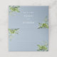 Detta eleganta eukalyptusgrönska blomsterbröllop namnkort kan anpassas med era namn och speciella datum på baksidan mot en dammig blå bakgrund. Designad av Thisisnotme©