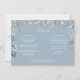 Ett elegant informationskort med dammig blå blomsterkaskad för brölloppsdetaljer, personligt anpassat med era speciella detaljer i stilfull typografi och era namn och bröllopsdatum på baksidan. Designad av Thisisnotme