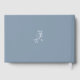 Denna bröllopsgästbok har det klassiska franska blomstermonogrammet i dammig blå och vit med ett modernt kalligrafiskt typsnitt. Den perfekta minnesgåvan för nygifta att fånga sina gästers välgångsönskningar.