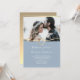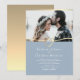 Modern dammig blå bröllopsinbjudan med ett romantiskt hjärta av guldrep och elegant kalligrafi. Har en anpassad fotodel - perfekt för att lägga till en personlig touch på din speciella dag. Ren, minimalistisk layout för tidlös charm. För hjälp med anpassning, maila bpkolman@gmail.com.