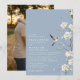 Denna dammiga blå chinoiserie blomster trädgård bröllopsinbjudan kan anpassas med din information i modern typografi och ett speciellt foto på baksidan. Designad av Thisisnotme
