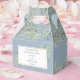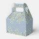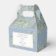 Elegant akvarellgrönska bröllopsgåva låda med ömtåliga gröna blad på en dammig blå bakgrund som ramar in ditt tackmeddelande i modern typografi. Ett perfekt sätt att tacka dina gäster! Designad av Thisisnotme
