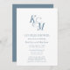 Dammig blå elegant klassisk monogram bröllop brudparstvätt inbjudningskort. Fira din speciella dag med detta eleganta och vackra bröllopsinbjudningskort för att försköna ditt speciella tillfälle. All text är förarrangerad för att du enkelt och snabbt ska kunna anpassa den med dina egna detaljer.