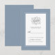 Dammig blå elegant bröllop chic kalligrafi RSVP detalj infogande kort design har en vacker kant i blått som inkluderar en elegant liten vit kant. Stilfull kalligrafi och skrivstil är kolgrå på vit bakgrund. Baksidan av designen matchar i enfärgad dammig blå. Se till att kolla in de matchande svarsetiketter med returadress som finns tillgängliga i en separat annonsiering!