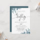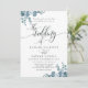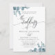 Dammig blå eukalyptus grönska bröllopsinbjudan. Denna anpassade moderna bröllopsdesign kan enkelt anpassas med dina egna bröllopsdetaljer.