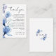 En elegant dammig blå genomskinlig blomsterbröllop tack mottagningskort, personlig med ett speciellt meddelande och brudens och brudgummens namn och monogram initialer på baksidan. Designad av Thisisnotme©