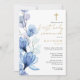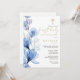 Denna eleganta dammiga blå genomskinliga blomsterelement Första heliga kommunion inbjudan kan anpassas med din information i chic typografi med ditt monogram på baksidan. Designad av Thisisnotme