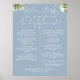 Detta eleganta dammiga blå bröllopsskylt för bröllopsitinerary, med vacker blommande grönska, kan anpassas med din information i chic typografi. Designad av Thisisnotme©