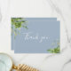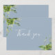 Dammig blå grönska blomsterelegant script tack kort