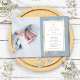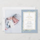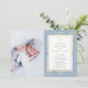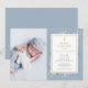 Med känsliga akvarellblad på en dammig blå bakgrund och ett elegant guldkors kan denna snygga dop- eller dopinbjudan anpassas med ditt speciella foto och evenemangsinformation. Designad av Thisisnotme©