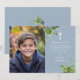 Detta eleganta eukalyptus grönska botaniska dammiga blåa bekräftelse korthälsning kan anpassas med ditt speciella foto och tacksamt meddelande i chic typografi med monogram initialer på baksidan. Designad av Thisisnotme©
