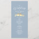 Elegant dammig blå bröllopsceremoni program med ett romantiskt par av guld älsklingar och moderna kalligrafi teckensnitt. Denna vertikala layout beskriver ceremonins tidsschema och innehåller dina namn och bröllopsdatum. Perfekt för vår-, sommar- eller tidiga höstbröllop med en pastell, naturinspirerad eller romantisk tema. En vacker matchning till den fullständiga dammiga blå och guld älsklingar bröllopsinbjudan suite.