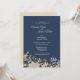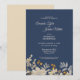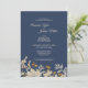 Denna dammiga blå höstboho-bröllopsinbjudan kombinerar en antikt vibe med en retro bohemisk vildblomslook. De eleganta, neutrala beige vildblommorna ovanpå den dammiga blå, marinblå bakgrunden, med dess klassiska kalligrafitypografi, möjliggör ett formellt men vilt och blommigt, vintage-inspirerat bröllopstema.
