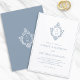 Dammig blå kam monogram formell elegant bröllop inbjudningar