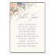 Dammig blå och krämfärgad blommig bröllopskort 'tabell fyra' med elegant handskrift och en textmall för gästernas namn.