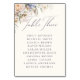 Dammig blå och krämfärgad blomsterbröllop 'bord tre' kort med elegant handskrift och en textmall för gästernas namn.