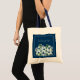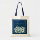 Dammig blå och marinblå countryblomma design för dina personliga brudtärnors väskor. Country stil blommor på marinblå bakgrund. Vacker sommarblomma i "något blått" färgtema