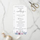 Eleganta dammiga blå och mauve akvarellblommor och lövverk, bröllopsprogram. Programmet har snygg kalligrafi "bröllop" accent med flera rader för anpassade textlistor för ceremonieordning, bröllopsfest och tackkort.