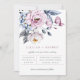 Dammig blå-mauve blomsterbukett bröllopsinbjudan meddelande