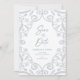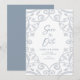 Detta är ett perfekt bröllop rädda datum-kort som känns kungligt, romantiskt och elegant med en touch av mjuk vacker dammig blå silverglitter, blomster- slingramdesign med blad. Perfekt för vintersäsonger, såväl som året runt.