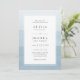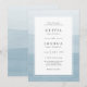 Dammig blå modern akvarellbröllopsinbjudan. Denna vackra och eleganta dammiga blå bröllopsinbjudan har en akvarell-målad ombre-bakgrund med en vit kant. Baksidan av inbjudan har samma blå akvarellbakgrund. Hitta matchande föremål i Dusty Blue Watercolor Ombre Bröllops Kollektion.