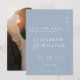Detta dammiga blå minimalistiska monogram bröllop spar datum kan anpassas med din information i modern typografi och ett speciellt foto på baksidan. Utformad av Thisisnotme