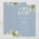 Dammig blå Oh Baby Botanisk grönska Bebis-fest Inbjudningar