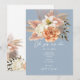 Fira din kärlek med stil med denna eleganta bröllopsinbjudan, med akvarell persika och elfenbensvita blommor över en mjuk dammig blå bakgrund. Med romantisk skrift och anpassningsbara detaljer är det perfekt för att samordna med din brölloppssvit. Behöver du hjälp med anpassning? Kontakta mig på bpkolman@gmail.com.