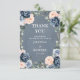 Dammig blå blomstergeometrisk bröllop tackkort med eleganta buketter av marinblå / dammig blå, vit, rosa, persikorosa ros och salvia gröna eukalyptusblad och elegant glitter geometrisk neutral ram. Vänligen kontakta mig för hjälp med anpassning eller om du behöver någon annan produkt med denna design.