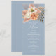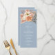 Sätt en förfinad ton på er mottagning med denna eleganta dammiga blå bröllopsmeny med mjuka akvarellblommor i persika, elfenben och rosatoner. En romantisk layout med trendig script listar varje rätt vackert - från förrätt till efterrätt. Perfekt för boho-, rustika och blomsterinspirerade bröllop. Behöver du hjälp med anpassning? Jag är här för att assistera på bpkolman@gmail.com.