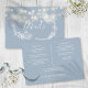 En elegant dammig blå bröllopsdetaljer informationsfäste kort med vackra stränglyktor och handritade blommor. Personifiera med dina speciella detaljer i stilfull typografi. Designad av Thisisnotme