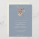 Enkelt. Minimalistisk. Modernt. Denna BOHO minimalistiska bröllopsinbjudan skapades från handmålad akvarellbild av internationellt licensierad konstnär och designer, Audrey Jeanne Roberts. Dämpade torkade vildblommor samlas i en lös bukett med en delikat fjäril och Gingko blad grönska. Denna version har en dammig blå framsida med elfenbenstext & elfenbensfärgad baksida. Upphovsrätt.