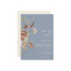 Enkelt. Modernt. Elegant. Dammig blå framsida med elfenbensfärgad text & elfenbensfärg på baksidan. Denna BOHO minimalistiska bröllopsinbjudan skapades från handmålad akvarellbild av internationellt licensierad konstnär och designer, Audrey Jeanne Roberts. Dämpade torkade vildblommor samlas i en lös bukett med en delikat fjäril och Gingko blad grönska. Upphovsrätt.