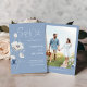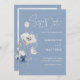 Upplev lockelsen med vår Dammiga Blå Blommande Bröllops Kallelse! Denna pjäs kombinerar den tidlösa elegansen hos nyanser av blått och den vilda skönheten hos akvarell blomsterdesign. Tillägget av ett personligt fotografi ger en touch av sentimentalitet och skapar en pjäs som är lika unik som din kärlekshistoria.