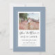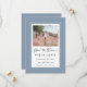 Dammblå Save The Date Förlovningsfoto bröllopskortdesign har en vacker chic ram i dammblått som inkluderar en elegant liten vit ram. Kalligrafi och typsnitt är kolgrå på vit bakgrund. En modern mall för datum och år kompletterar den unika kalligrafidesignen. [OBS: Bröllopsdatumet visas som visas med den vertikala stapeln eller linjen som finns ovanför \ på ett tangentbord eller på din smarta enhet med specialtecken. Du kan också anpassa med valfritt annat tecken som du väljer.] Anpassa med ditt favoritförlovningsfoto för att tillkännage din stora dag! Andra mönster finns tillgängliga i denna svit. (För bästa placering av din bild, använd ett fotoredigeringsverktyg för att centrera och beskära INNAN du laddar upp till Zazzle-webbplatsen.) E