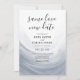 Meddela ditt nya bröllopsdatum på detta eleganta akvarellpensel våg save the date bröllopsinbjudan i dammig blågrå akvarell. Anpassa dina bröllopsdetaljer med svart fet och script typografi.