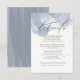 Enkel akvarellbakgrund i tre färger som du väljer - blå, rosafärgad och lila - med diskreta gyllene fläckar. All text är skriven med en kombination av elegant och sans-serif-teckensnitt som framhäver detta minimalistiska utseende. Kom och se hela kollektionen i vår butik för en komplett bröllsupplevelse.
