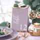 Välkommen dina gäster till sina platser med dessa stilrena och eleganta dammiga lavendel-lila bröllopsbordnummer. Med en minimalistisk design och modern kalligrafi lägger dessa bordnummer en touch av sofistikering till din bröllopsmottagning. Den mjuka bakgrunden och den rena, eleganta typografin säkerställer god läsbarhet samtidigt som de förhöjer din bröllopsdekor. Perfekta för alla bröllopsteman, dessa bordnummer hjälper till att skapa en förfinad och organiserad sittordning för din speciella dag.