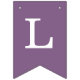 En enkel banner med flaggor för dammig lila bröllop, med namnen på bruden och brudgummen, med vita versaler på dammig lila bakgrund. Den passar för namn med 7 och 8 bokstäver (och naturligtvis för kortare namn).