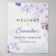 Dammig lila vårblommig bröllopsdusch-välkomsthälsn poster