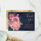 Elegant tackkort med vackra blommor och falska guldlöv med modern typografi.