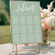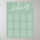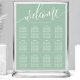 Hjälp dina gäster att hitta sina platser med lätthet med denna eleganta dammiga mintgröna sittplatskarta för bröllop. Designen har ett modernt, handskrivet "Välkommen"-manus i vitt, i kombination med ett rent serif-teckensnitt för gästnamn och bordnummer. Dess sofistikerade minimalistiska estetik och mjuka mintgröna ton gör det till ett mångsidigt val som vackert kompletterar en mängd olika bröllopsteman, från romantiska trädgårdsceremonier till moderna inomhusmottagningar. Denna layout är perfekt strukturerad för hög läsbarhet, vilket säkerställer en smidig övergång för dina gäster från ceremonin till firandet. Den ger en polerad och professionell touch till din speciella dags dekoration.