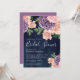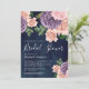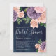Dammig persika lila blomstergudning marinblå bröll inbjudningar