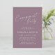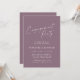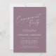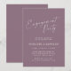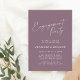 Denna inbjudan till förlovningsfest har "Förlovningsfest" i flytande vit skrivstil högst upp på en dammig mauve lila bakgrund, med parets namn, datum, lokal och RSVP-information i ren vit text nedan. Mjuk, romantisk och aktuell – perfekt för en vår- eller höstförlovningsfest.