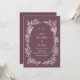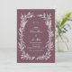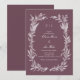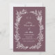 Sätt tonen för din romantiska fest med denna fantastiska dammiga plommonfärgade bröllopsinbjudan, med ömtåliga, handritade vita vilda blommor och botanisk lövverk arrangerade i en frodig, organisk kransram. Den djupa mauvefärgade bakgrunden i kombination med knivskarpt vitt linje konst skapar en tidlös, vintageinspirerad estetik som är perfekt för trädgårdsbröllop, utomhusceremonier eller intima tillställningar - särskilt fantastisk på ikoniska platser som Le Pavillon Hotel i New Orleans.
