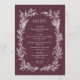 Förhöj era bröllopsbord med denna sofistikerade burgunderfärgade vildbloms kransbröllopsmeny, med en krispig vit handritad botanisk ram av vilda blommor och lövverk mot en rik djup plommonbakgrund. Detta menykort är det perfekta sömlösa komplementet till era matchande burgunderfärgade vildbloms bröllopsinbjudningar, detaljerade kort och bordssmyckning, vilket skapar en sammanhängande, elegant brevpappersserie som knyter samman er hela bröllopsestetik.
