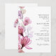 Denna eleganta dammiga rosa genomskinliga blomsterbröllopsinbjudan kan anpassas med din information i chic typografi med ditt monogram på baksidan. Designad av Thisisnotme