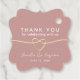 Eleganta dammiga rosa bröllopsetiketter med ett romantiskt guldrep hjärta och modern kalligrafi. Bracketformen tillför en charmig touch, perfekt för att knyta på presentpåsar, mini champagneflaskor eller tacksamhetsgåvor. Idealiskt för rosafärgade, minimalistiska eller guldförgyllda bröllopsteman. Personalisera med namn och datum.